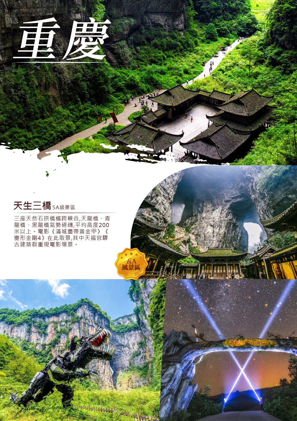 第五天 武隆/重慶-遊覽【天生三橋(含環保車+出口電瓶車+觀光電梯)】