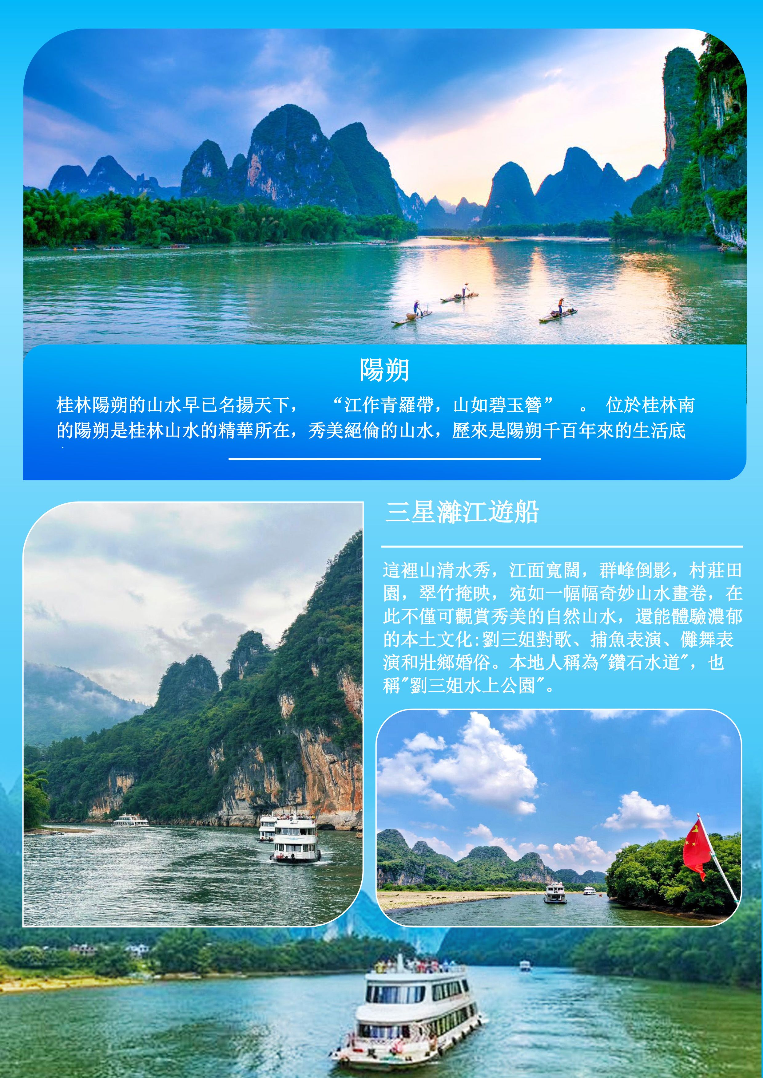 回程:大灣區航空 HB531 桂林/香港 17:50 -19:20 (第五天)