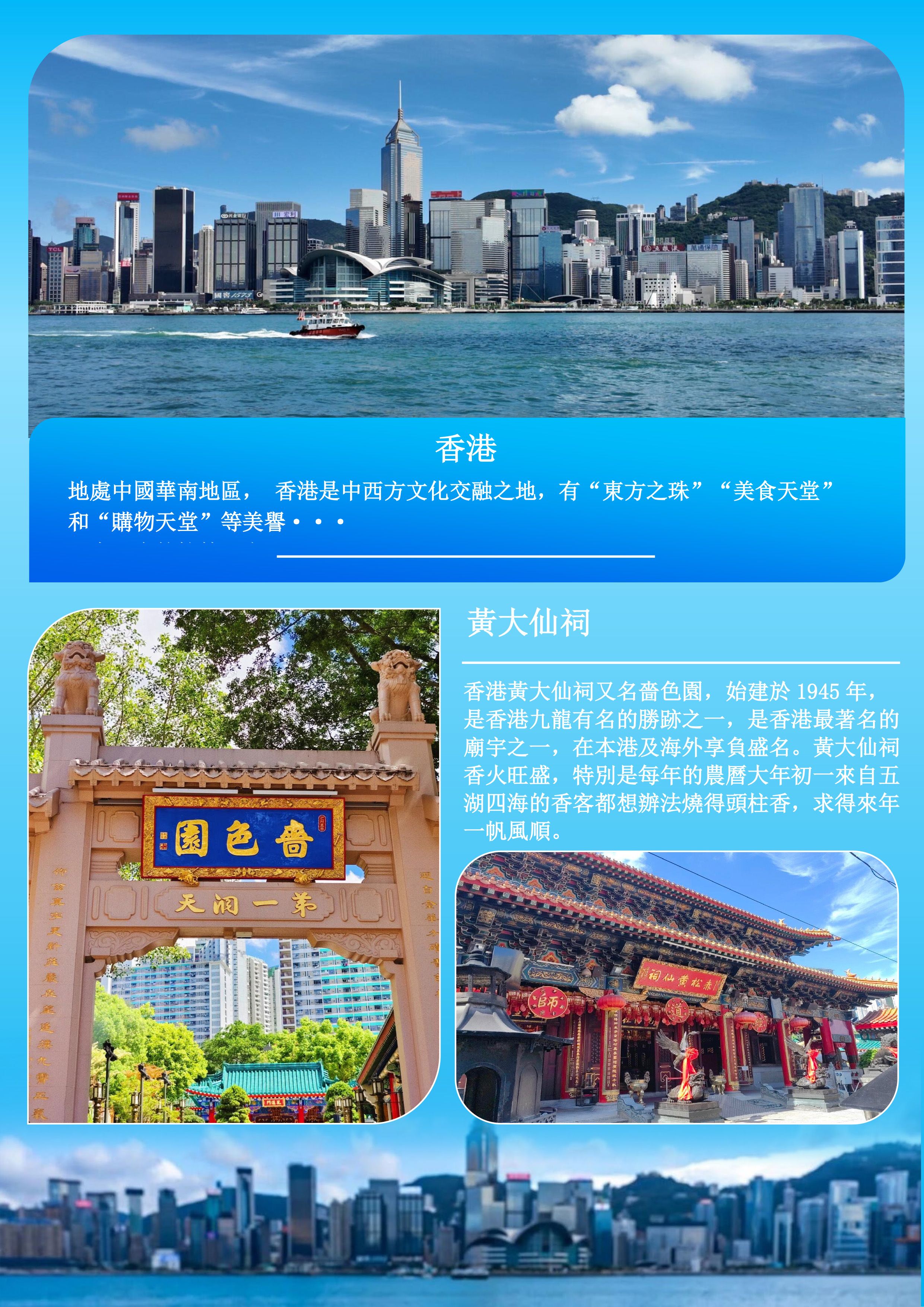 香港酒店接團後,前往享用早餐,後遊覽黃大仙廟,参觀【藥油店】,前往打卡香港著名的