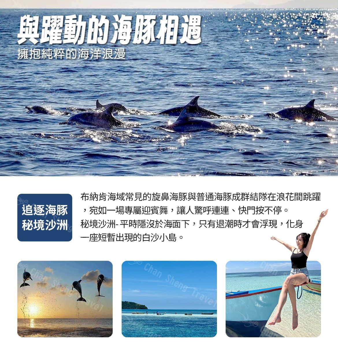 第三天 NDC Resort 私人碼頭出海➔追逐海豚➔秘境沙洲➔布納肯國家海洋公園(浮潛+登島用餐+浮潛)