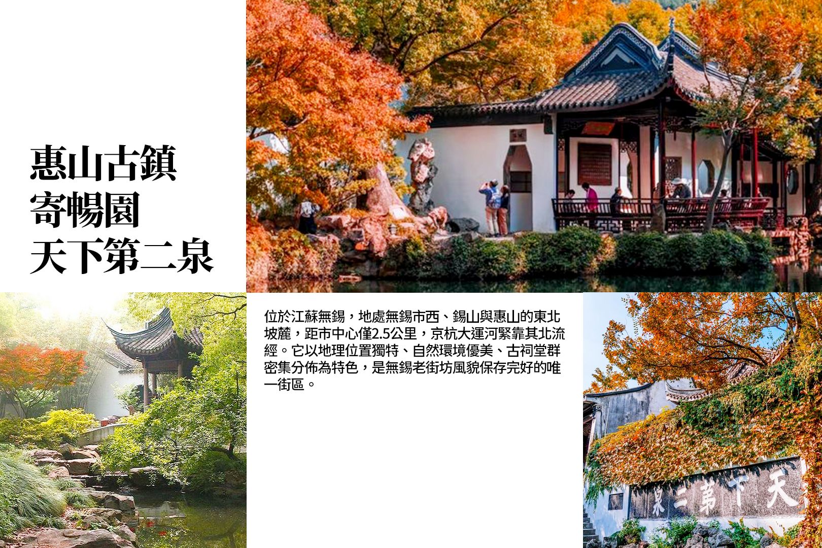 【大報恩寺】位於南京市秦淮區中華門外,是中國規格最高、規模最大、保存最完整的寺廟遺址,遺址公園中保護性展示了大報恩寺遺址中的千年地宮和珍貴畫廊,以及從地宮中出土的石函、鐵函、七寶阿育王塔、金棺銀槨等世界級國寶。【惠山古鎮+寄暢園+天下第二泉】位於江蘇無錫,地處無錫市西、錫山與惠山的東北坡麓,距市中心僅2.5公里,京杭大運河緊靠其北流經。它以地理位置獨特、自然環境優美、古祠堂群密集分佈為特色,是無錫...