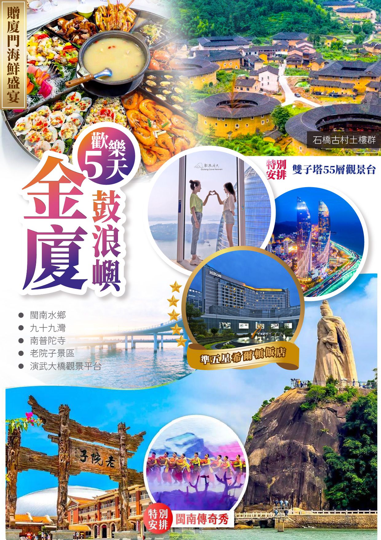 ◆點我報名!! 點我報名!! 點我報名!!線上LINE客服 https://lin.ee/b5zq2gk◆【出發日期】:10/16~2026/01。每週二、四、六出發(北中高皆可出發)。★★★大陸地區無自然單間,金廈五天單房差4000元。★★★滿2歲~12歲小孩者同大人價,嬰兒團費4000元。團費包含:1.團體來回經濟艙機票+兩地機場稅+10公斤託運行李。(每人限重行李10公斤)2.住宿及全程表列餐食。3.行程所列之旅遊交通費用。《 特別備注 》無自費行程中【 自貿區乳膠觀光工廠 】此為景中站自由參觀選購無任何壓力 。◆【參考航班】:松山/台中/高雄松山(以上航班僅供參考,正確航班依最終行程為主。)去程 華信航空 14:35-15:55 松山-金門(TSA/KNH) AE-1271回程 華信航空 12:50-14:00 金門-松山(KNH/TSA) AE-1270去程 立榮航空 14:40...